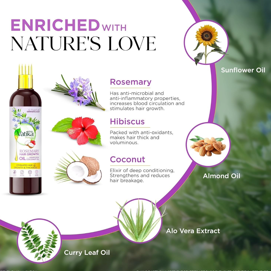 Introducing Dabur Vatika Rosemary Hair Growth Oil, a trusted creation from the house of Dabur Vatika, driven by a passion for crafting effective and safe formulations. Co-created with dermatologists and nature, this potent oil features a blend of 9 natural oils, including coconut, sunflower, and almond, along with rosemary, hibiscus, and more. Stimulating hair growth and thickness is at the heart of this oil's benefits. Enriched with Rosemary, it enhances blood circulation and rejuvenates your hair, making it fuller and stronger. Plus, it's a champion in reducing hair fall, thanks to ingredients like Hibiscus, Brahmi, Bhringraj, Methi, and Amla, which strengthen hair follicles. Your scalp gets a dose of revitalization with Neem, Methi, Almond, Olive, and Castor, packed with antioxidants. And, here's the best part—it's environmentally friendly and people-friendly. No mineral oil, no parabens, no artificial fragrance, and absolutely no animal testing. Dabur Vatika Rosemary Hair Growth Oil, where nature meets quality.